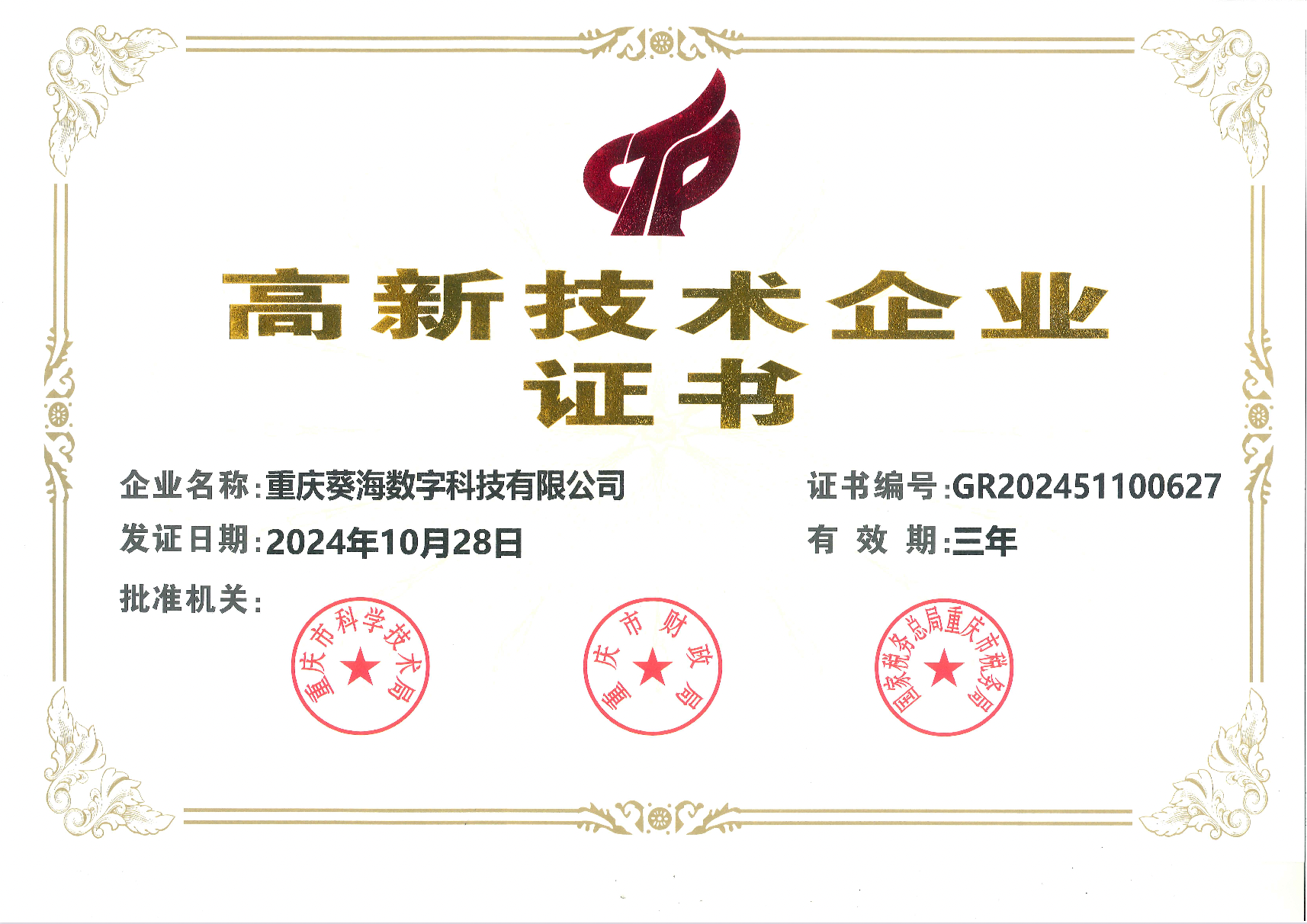 03月,重慶江北區(qū)政府引進 重慶葵海數(shù)字科技有限公司注冊成立;